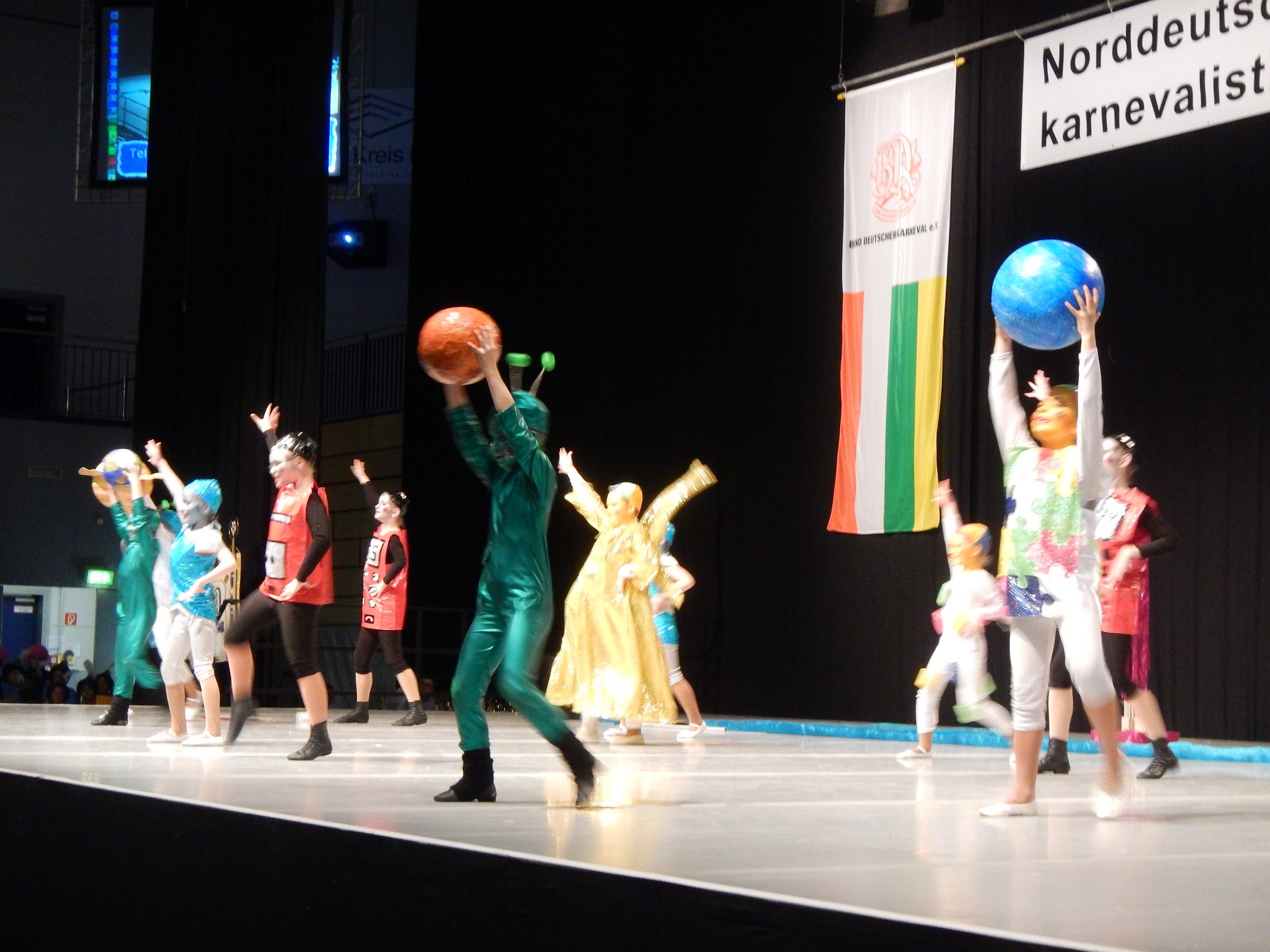 Anschließend durften wir uns noch die anderen Garden und Mariechen anschauen. Nach ungefähr einer Stunde haben wir uns noch einmal versammelt und dann war es soweit: Wir standen auf der Bühne - und es hat sich gelohnt: wir haben einen guten 12. Platz belegt! Nach unserem Auftritt sind 14 Leute von uns schon nach Hause gefahren, 14 Leute sind noch geblieben. Am Abend sind wir dann alle hungrig in eine Kneipe eingekehrt. Es dauerte sehr lange bis unser Essen kam und alle Kinder waren schon sehr müde. Nach dem Essen kam der Wirt mit einer großen Überraschung: Ein großer Saal mit einer Bühne! Der Vorhang ging auf, die Musik spielte und wir tanzten, was das Zeug hält. Wir waren überrascht, dass so eine kleine Kneipe einen so tollen Saal hatte! Nach unserem Tanz waren alle wieder hellwach und wir machten und auf den Weg zurück zur Jugendherberge. Dort angekommen haben wir noch eine halbe Stunde einen Film angeschaut und dann fielen uns die Augen zu. Es war ein schönes Wochenende!